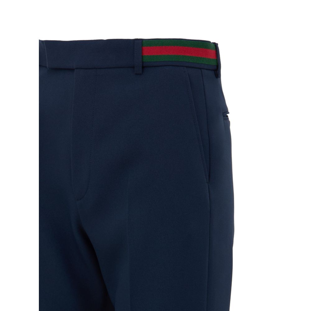 Blue Tailored Trousers with Gucci Web Tape Detail.
