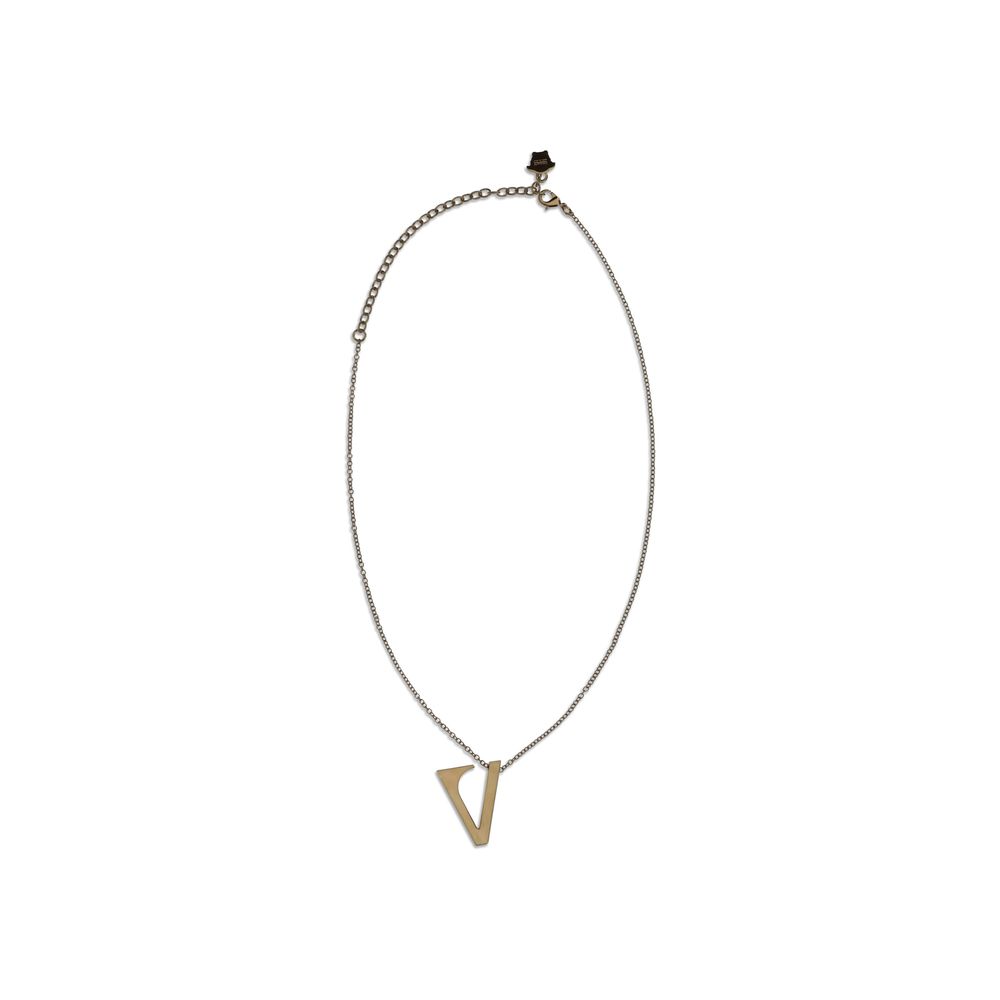 The V chain Necklace by Versace is enhanced by the iconic V-shaped pendant with an engraved enamel Versace logo. Made from hypoallergenic materials and free of lead and nickel, it ensures comfort and safety. It features a lobster clasp for convenient and safe use.